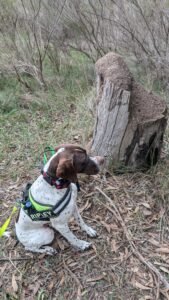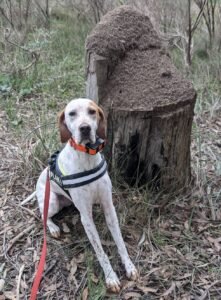 The two dogs used in this study are English Pointers, both possess high drive, have proven endurance, agility, and strong trainability. The two dogs have strong innate behaviours due to their working heritage and breeding. Both dogs were initially trained in passive-indication scent-detection on Koala scat , and were two years and three years of age respectively, at the onset of the new target odour training for Coconut ant byre.